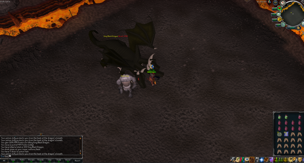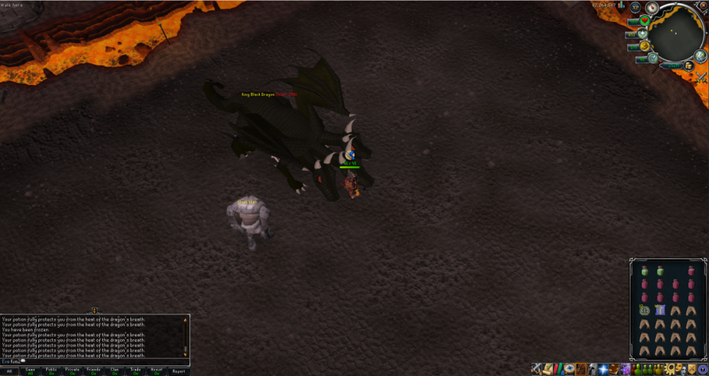 2. Ingame Username: Kim2 Description of bug: upon telling the Steel Titan familiar to attack an enemy with a large hitbox, the Steel Titan will be stuck walking back and forth forever between these two positions. Althought this bug is not exclusive to the King Black Dragon. Screenshots, if possible: Thank you.