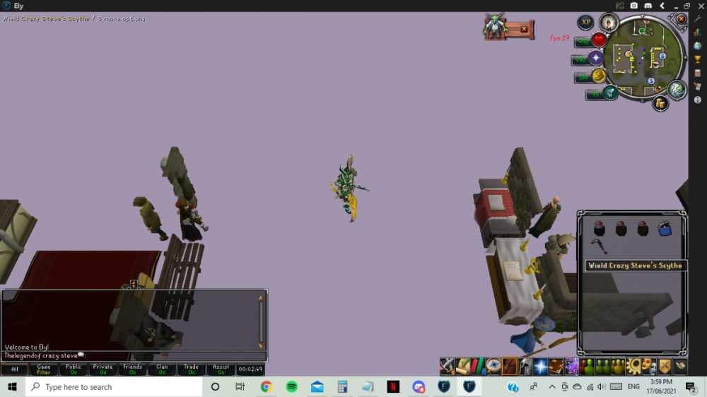 Hey team, just thought id post some visual bugs iv seen lately 1. climbing up the stairs at dom tower is creating a white screen where im forced to relog, happening around every 3-5 floors 2. my player has a bold spot, the haircut is a mullet (lol) 3. tiles around home and especially in edge bank have been wigging out, sometimes for eg the carpet dissapears on certain tiles and sometimes the tiles go grey or sometimes even all weird and colorful 4. when having two accounts logged in, sometimes one account will have a whitescreen where you can see npcs, players and the ground, walking further away from alt acc makes this go away but it sucks not being able to have 2 accs at edge 5. not sure if this is fixable but for a good 2 months or so my fps sits at 1-14 fps. very annoying and it is lower when i have another acc logged in. think this is mainly at edge but it nearly makes it unplayable. hopefully it can get fixed because even only having one account logged in on minimal def it still lags. also opening a web browser (like the forums to make this post rn) logs out my accounts. not sure if this is a problem with my laptop but its only a year old and id assume its capable of running 1 client on lowest def, as it used to do with no problems 6. weilding certain items creates a whitescreen (5heads bone scythe) 7. unable to change from safemode to directx/opengl these are just some i can remember atm but have been consistent over the last month or so (apart from dom tower which i only noticed today)