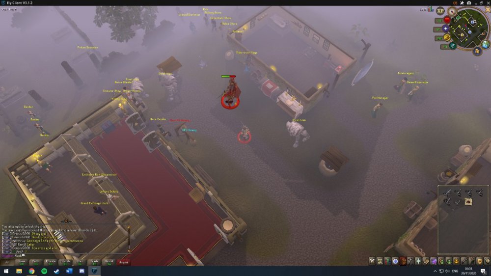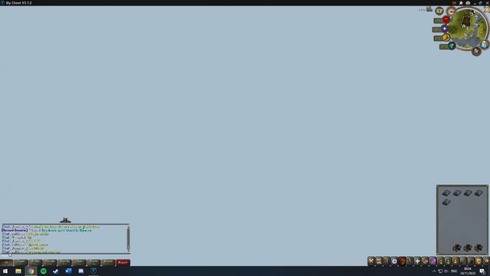 Lastly my account get's a blue screen, similar to one that occasionally happens in Player Owned Homes. At this point I cant move anywhere, cant click on anything, but can still type in the chat. To resolve this I have to relog. Once I relog, my account is fine again for 10-30 mins before it does it again.